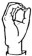На ћирилици написано ЈЕСЕНКА СЕОЧАНАЦ састоји се из 15 слова [?]. Исписано ћириличном једноручном азбуком за глувонеме: